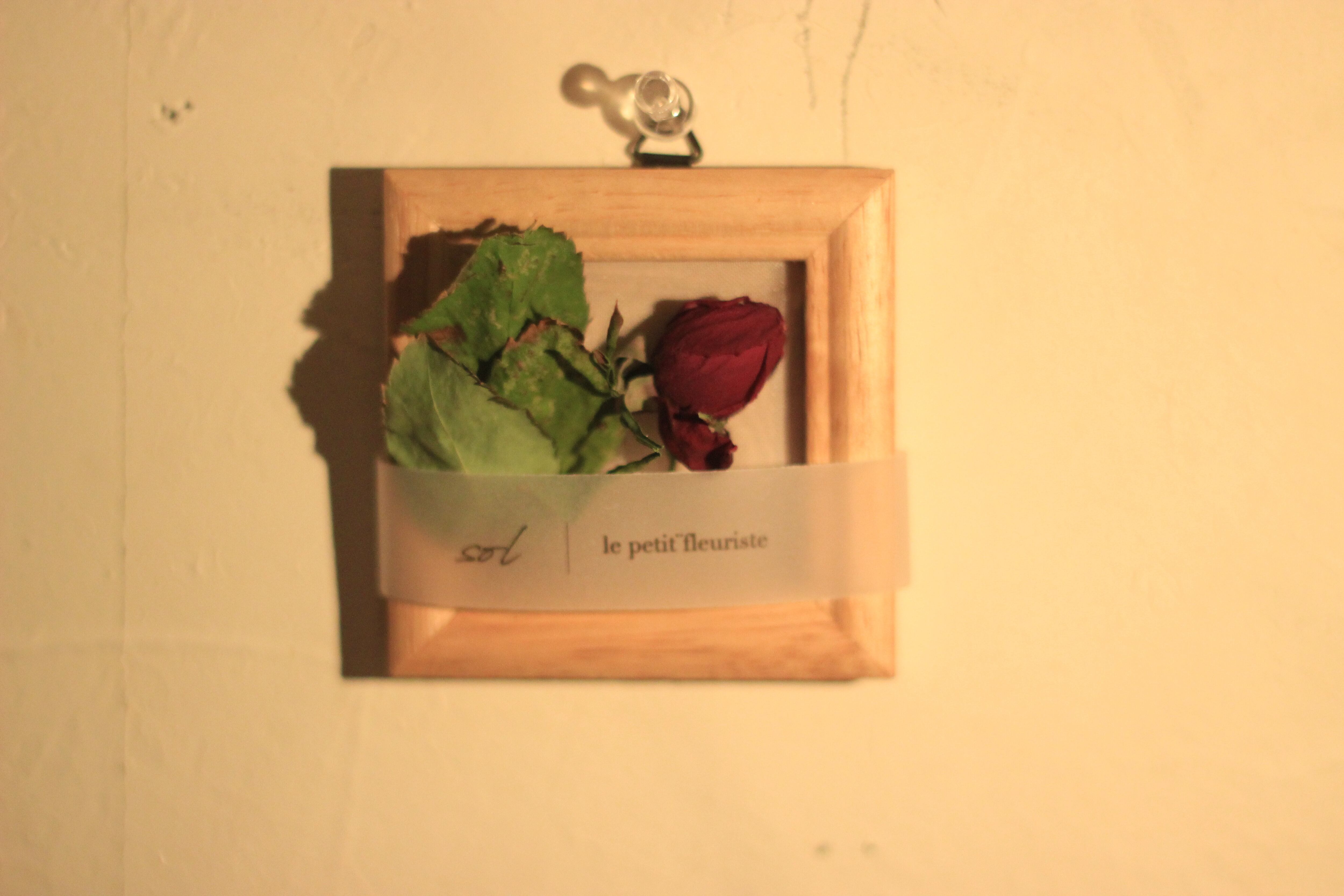 10cm×10cm程度の 正方形の額縁に薔薇のドライフラワー を入れました