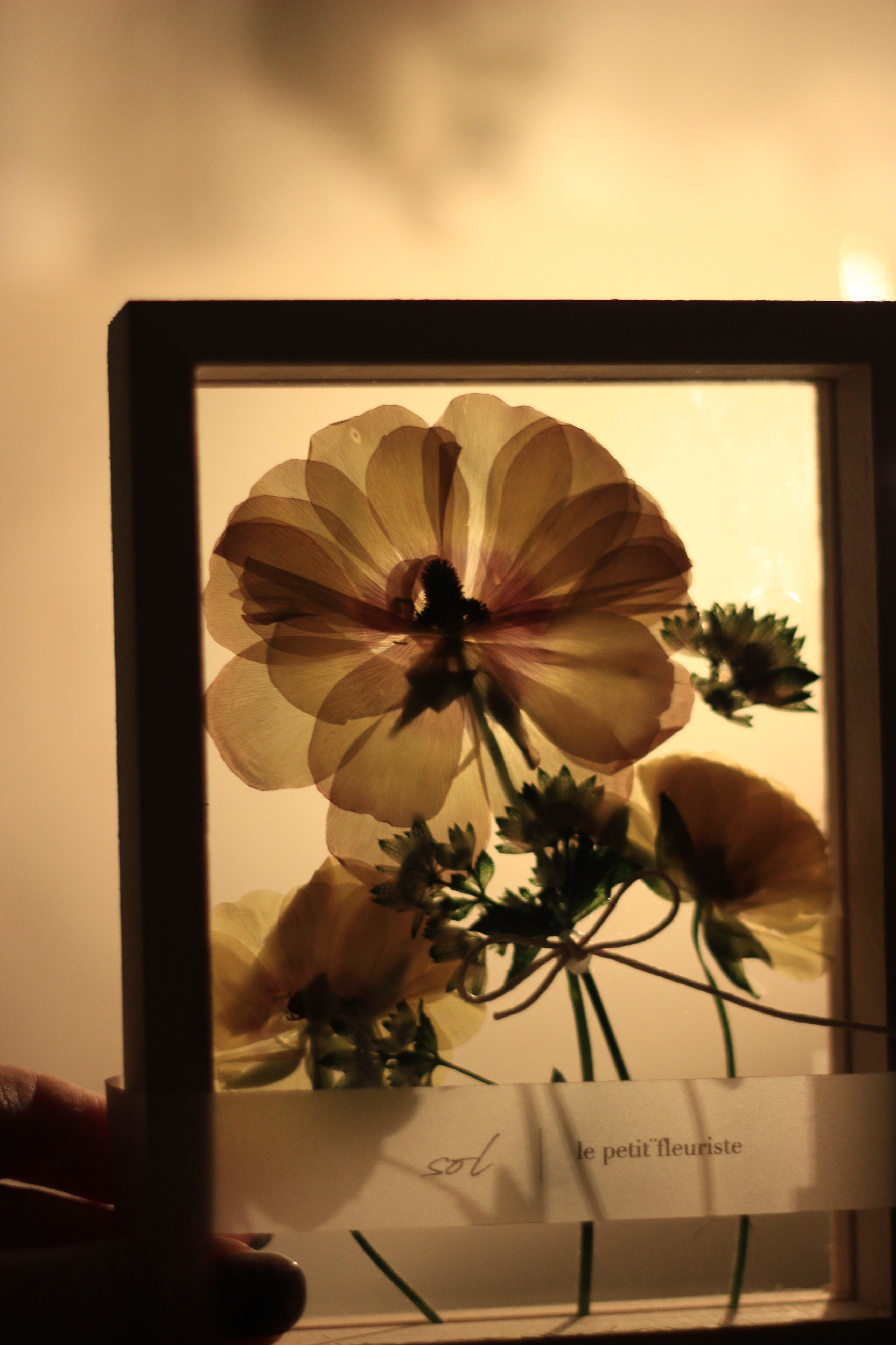 スターアニスの押し花をガラスフレームで閉じました